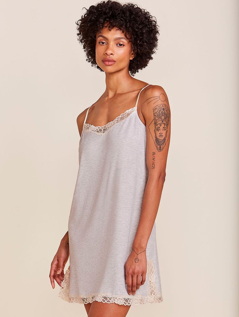 • Detalhe de renda em cor contrastante no decote e na barra