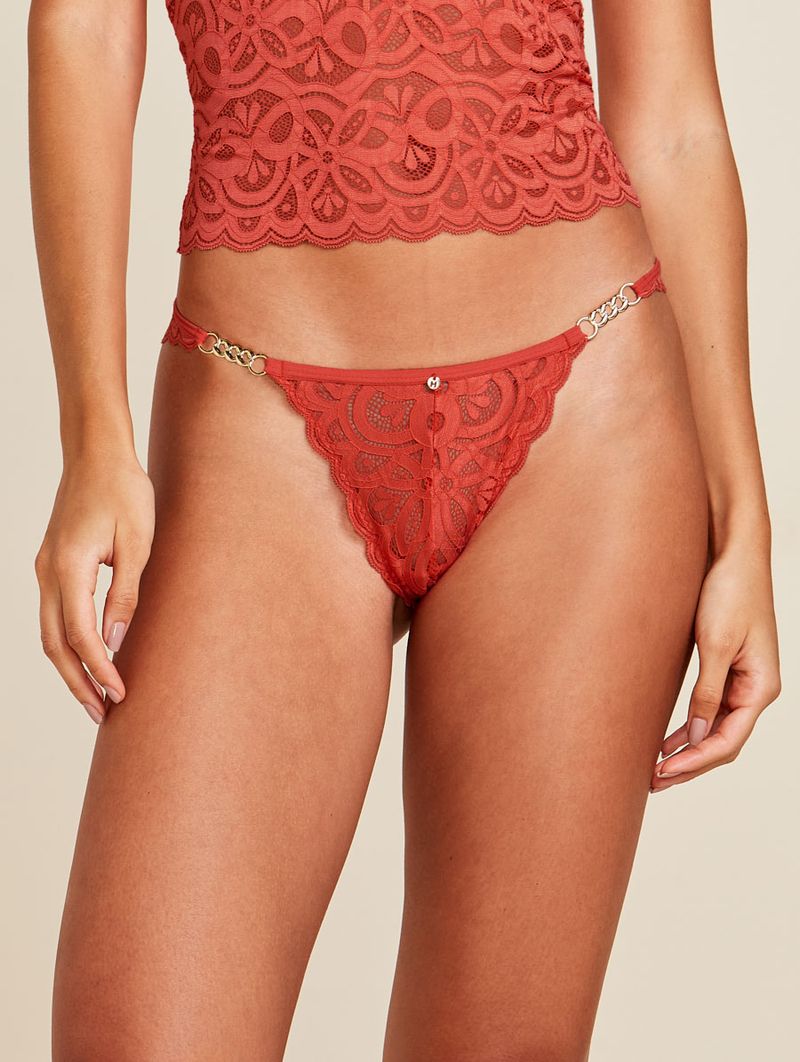 • Aviamento exclusivo de corrente em metal dourado em cada lateral da peça