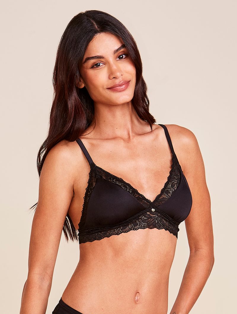 • Sutiã modelo top triângulo em microfibra acetinada e renda
